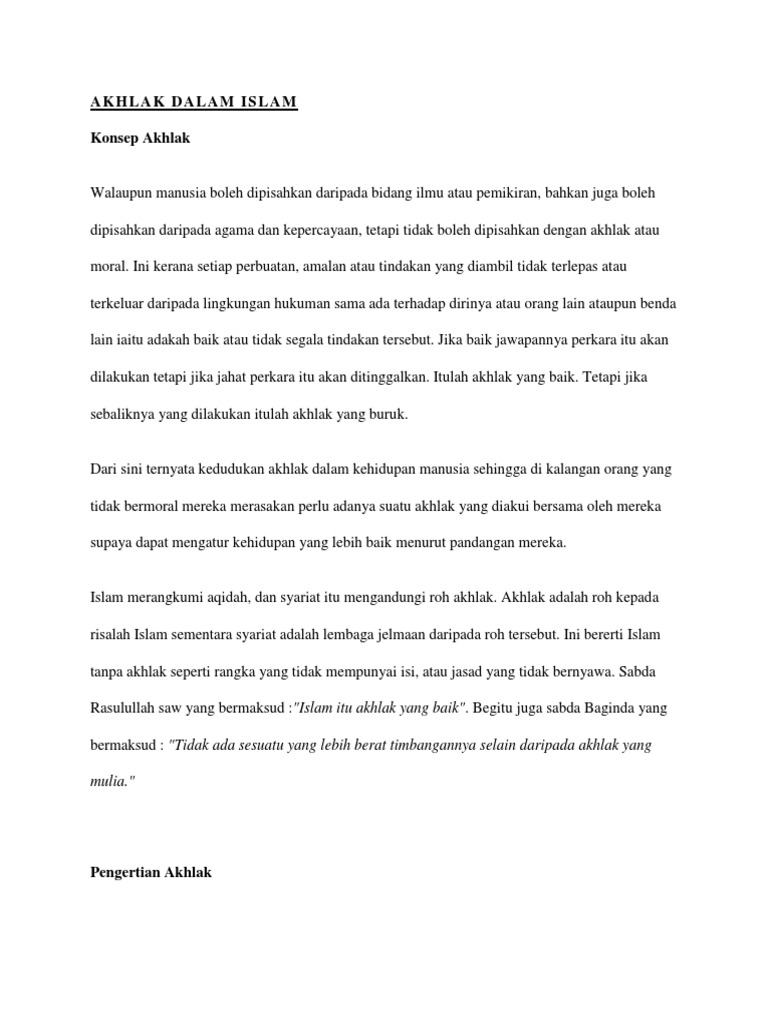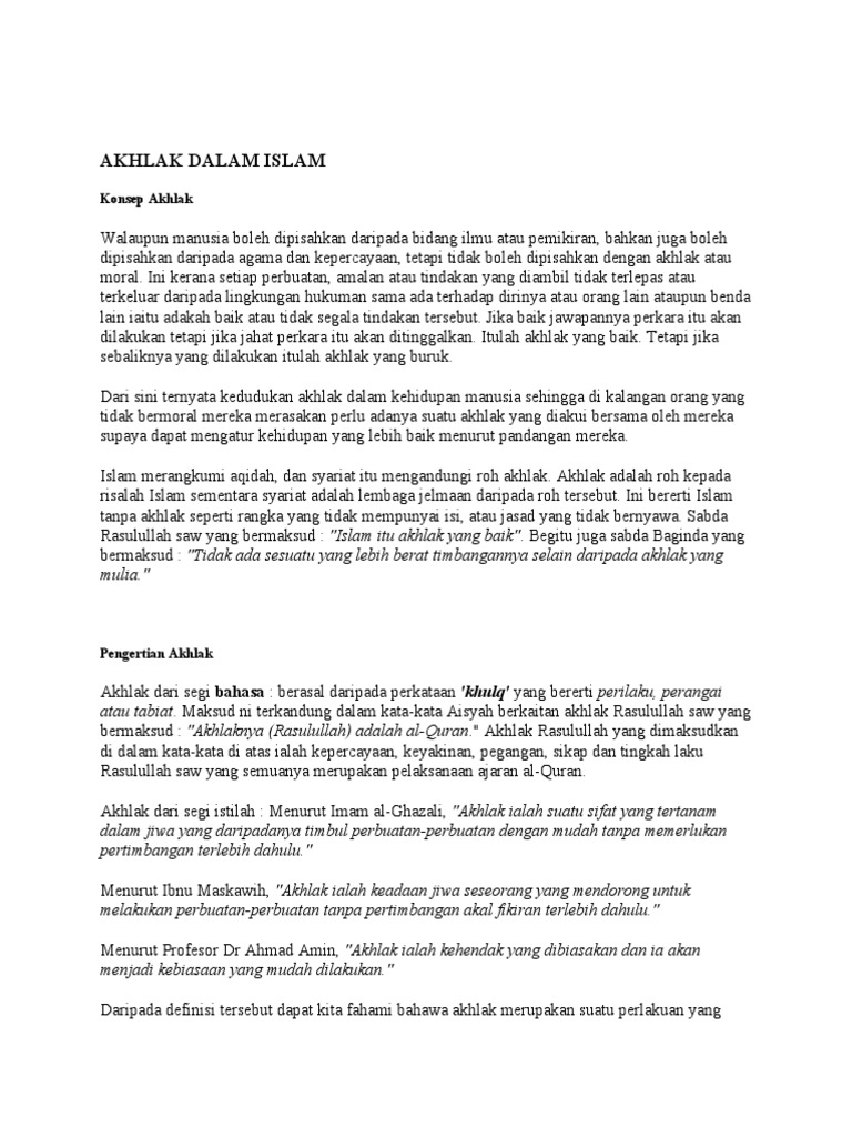 Dalam Islam seseorang akan memiliki derajat yang tinggi apabila ia memiliki akhlak yang baik. Daftar Isi sembunyikan 1 Pengertian Macam-macam Contoh dan Ayat Tentang Akhlak. Berbagai motif dan tujuan menjadi pemicunya.